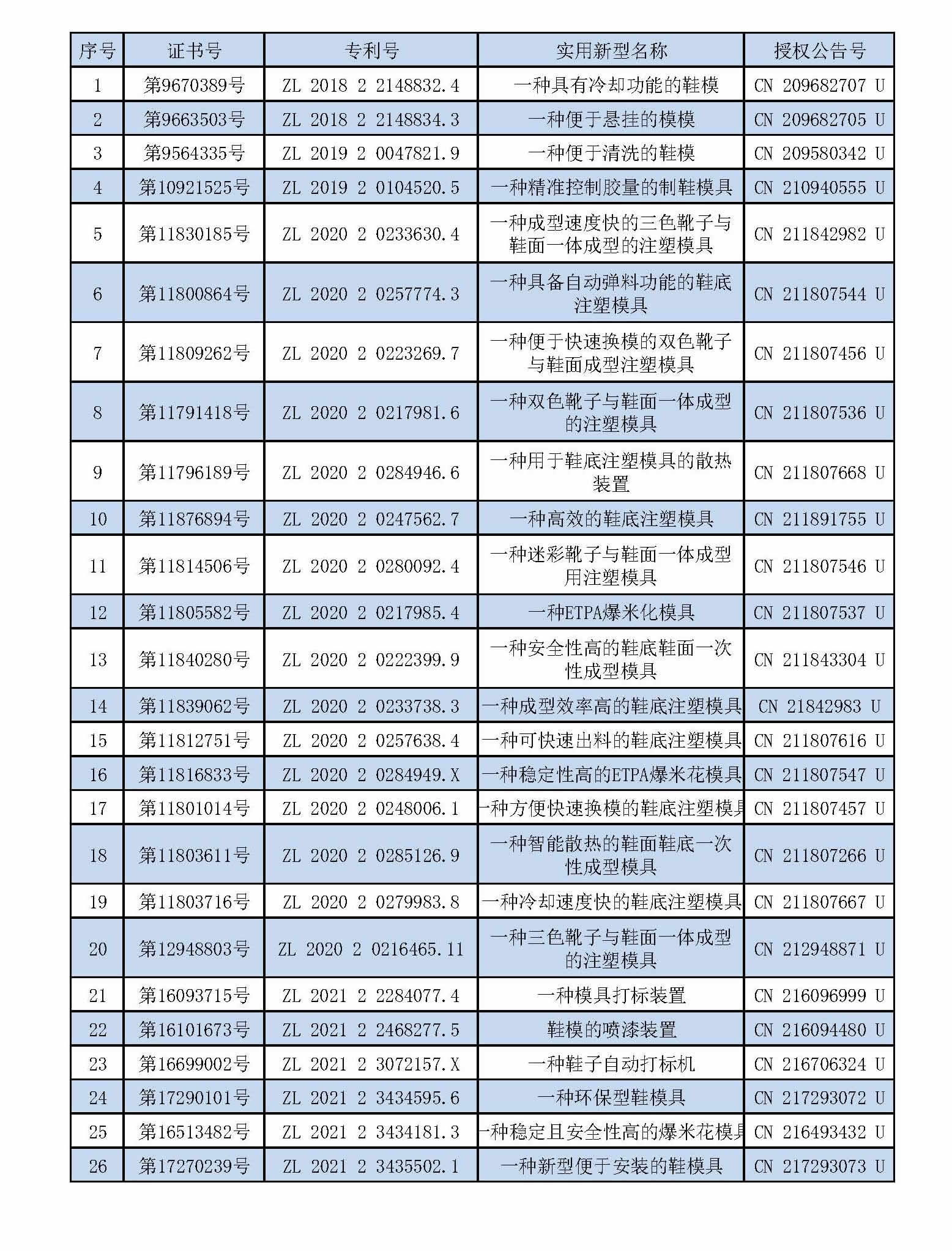 26個(gè)實(shí)用新型專(zhuān)利證書(shū)